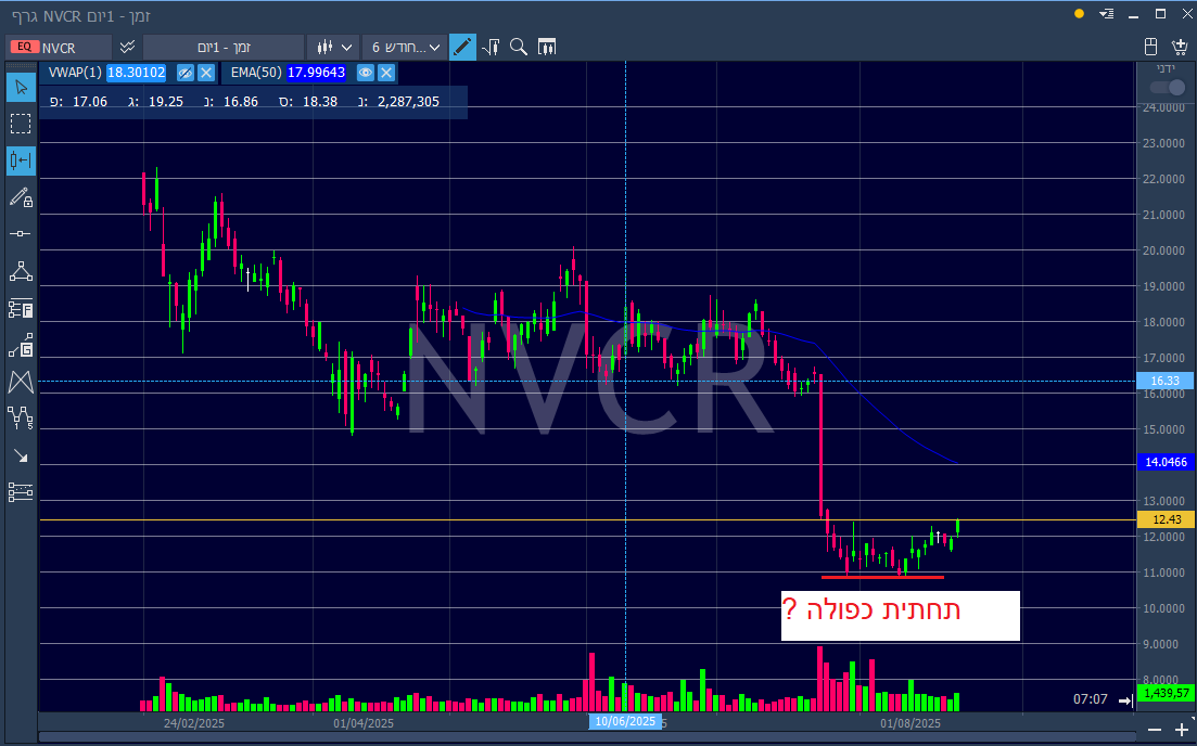 נכון ל- 22.8.2025 האם יש תבנית של תחתית כפולה במניה? היא ברת קניה?
